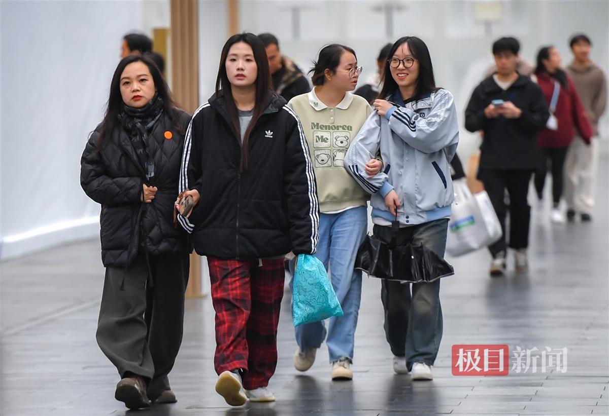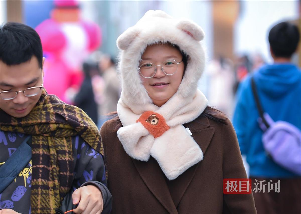 这股冷空气给武汉带来了“断崖式”的降温,许多对温度敏感的人已经迫不及待地穿上了冬天的厚衣,甚至羽绒服,以应对骤降的气温。汉街上,行人脚步匆匆,不少人还戴上了冬天的帽子、围巾和手套,全副武装地抵御着寒风。