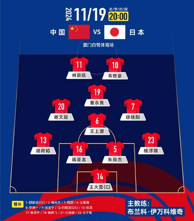 本场拜合拉木累积黄牌停赛,李磊伤缺,有伤在身的张玉宁进入替补席。伊万重组攻击线,派出无中锋阵,谢文能解禁复出,曹永竞首次先发,搭档韦世豪、林良铭。王上源、徐皓阳组成中场,李源一替补。后防线稳定,蒋圣龙、朱辰杰搭档中后卫,胡荷韬、杨泽翔分居两侧。蒋光太、王子铭、黄政宇等人进入大名单。