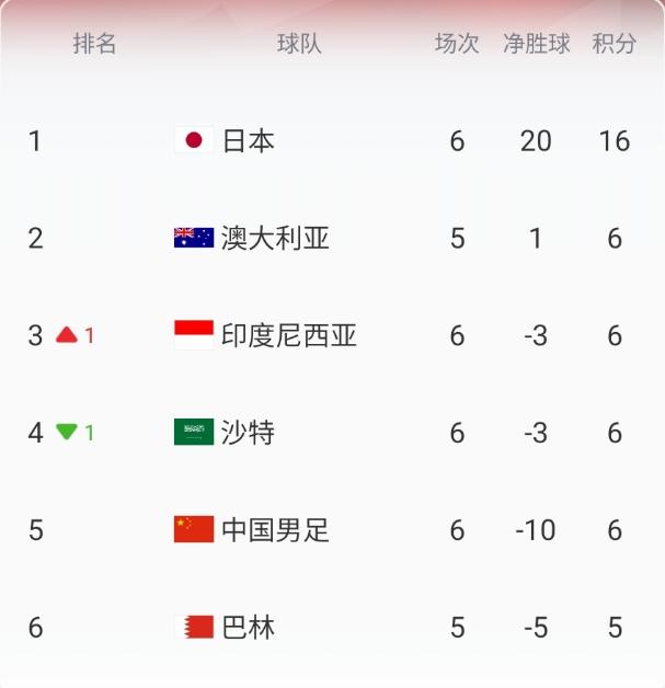 局势混乱!同组印尼力克沙特拿到首胜,积分追平国足,目前中、澳、沙、印同积6分,小组出线形势愈加复杂。