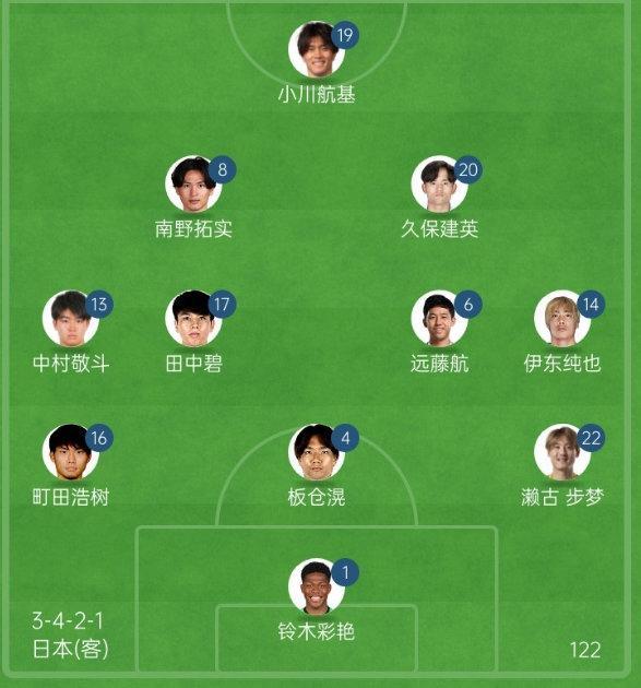然而比赛开始后,虽然日本队在控球率上遥遥领先,但并未创造出明显得分机会,在国足的拼命防守下,他们直到第24分钟才有了第一脚射门。遗憾的是,第39分钟,国足还是栽在了定位球防守上——久保健英开出角球,韦世豪头球冒顶,小川航基头球破门成功。上半场伤停补时阶段,日本队再次获得角球机会,町田浩树摆渡,后点的板仓滉头球破门,将上半场比分定格为2:0。