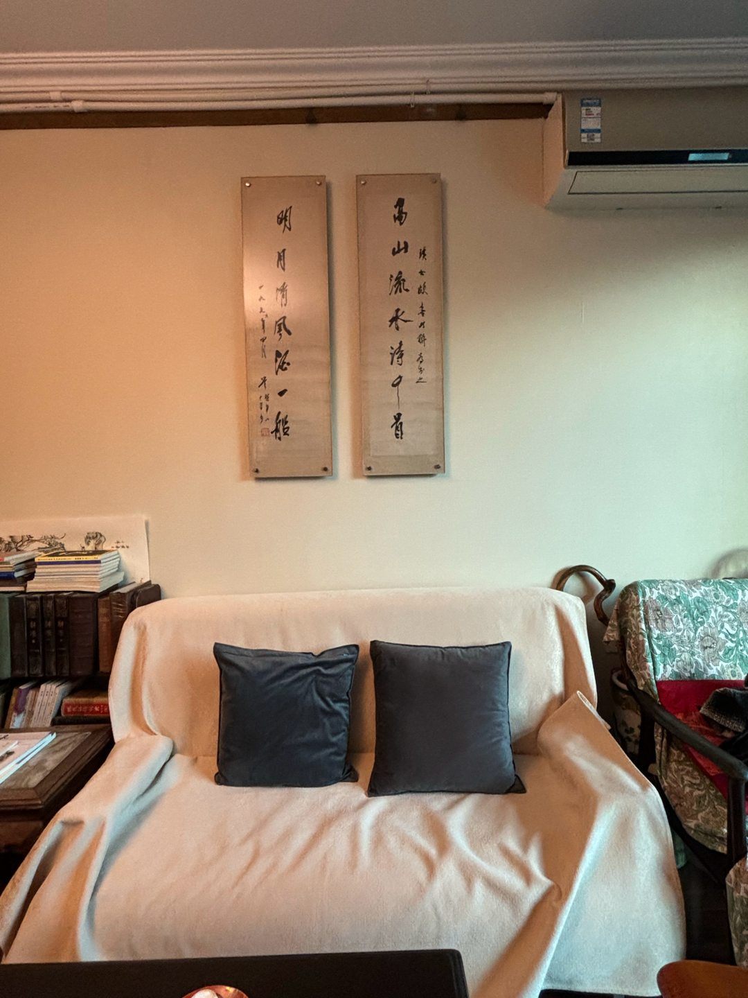 宗璞家中客厅墙壁上有父亲冯友兰写的一幅对联(封面新闻记者2024年10月拍摄于宗璞家中)