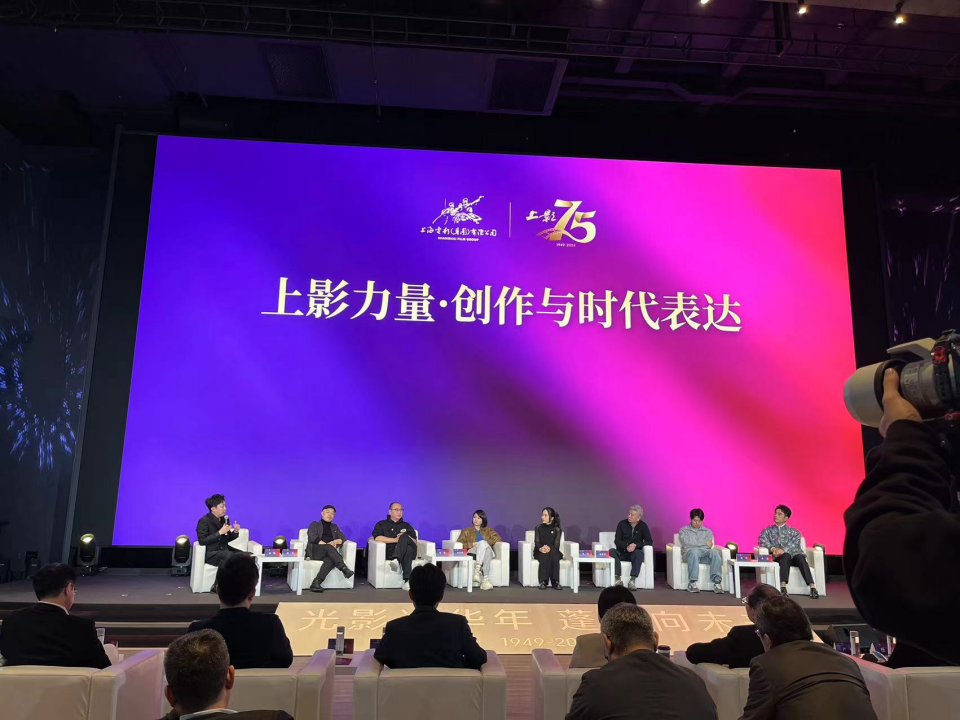 11月23日,“光影追华年 蓬勃向未来”庆祝上海电影制片厂成立75周年大会在上海影城举行。涂装一新的上海影城处处洋溢着上影元素。霸屏童年回忆的一张张熟悉面孔组成超豪华的老艺术家阵容集体“回家”,新一代电影人也带着自己的作品和对电影全新的理解前来“汇报”。
