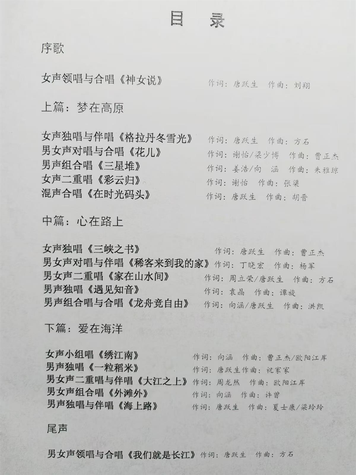 《长江组歌》目录