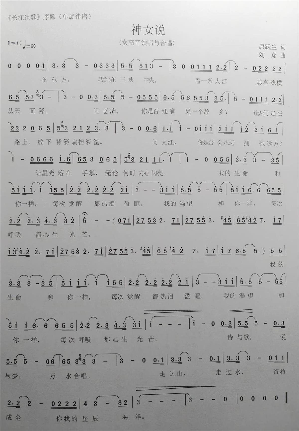 《长江组歌》歌谱之《神女说》