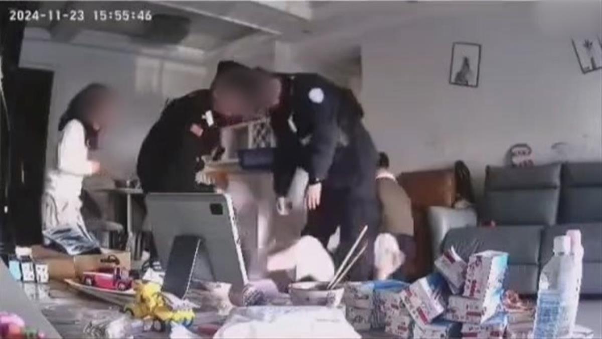 有人员赶来制止家暴的男子(网络视频截图)