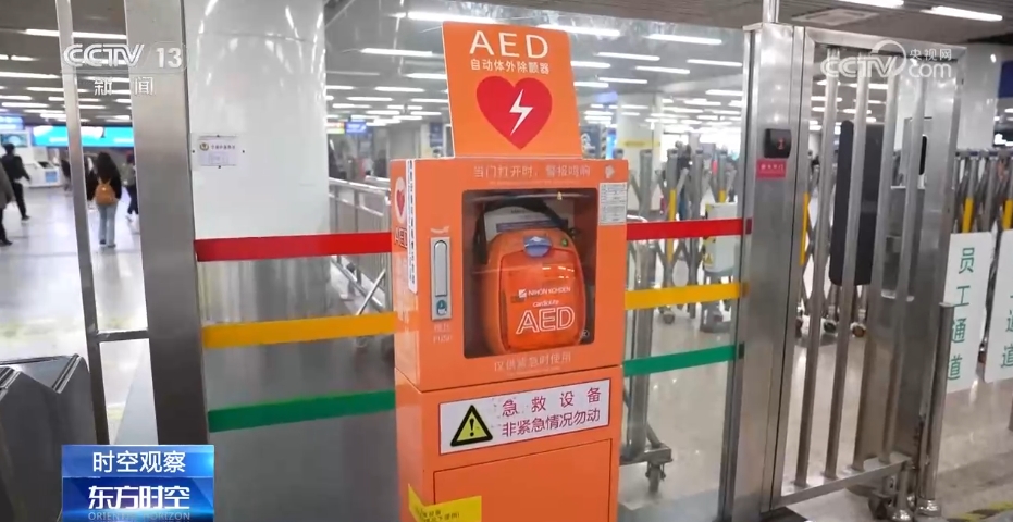 作为全国人流量最大的地铁站之一,近年来,地铁北京西站在进站口和出站口都放置了AED设备,遇到突发情况,乘客可以自主取用。