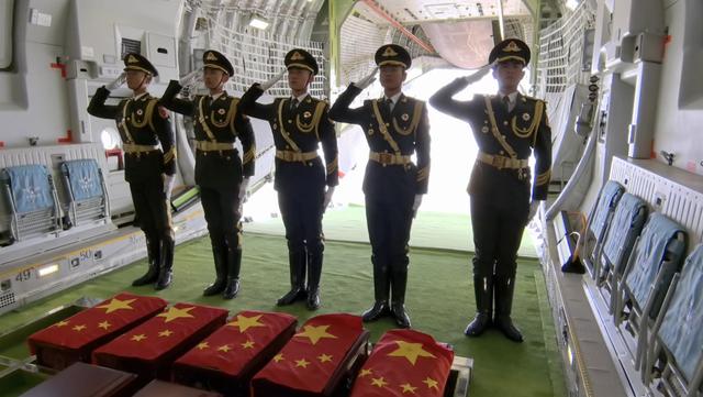 中央宣传部、中央对外联络部、外交部、国家发展改革委、财政部、退役军人事务部、军委政治工作部等军地有关部门组成的中方交接代表团组、中国驻韩国使馆国防武官等相关人员共同见证迎接志愿军烈士遗骸回家。
