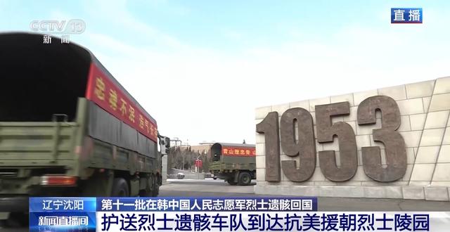 护送第十一批43位在韩中国人民志愿军烈士遗骸的车队,缓缓驶入沈阳抗美援朝烈士陵园。明天(29日)10时,沈阳抗美援朝烈士陵园将举行庄严肃穆的安葬仪式。