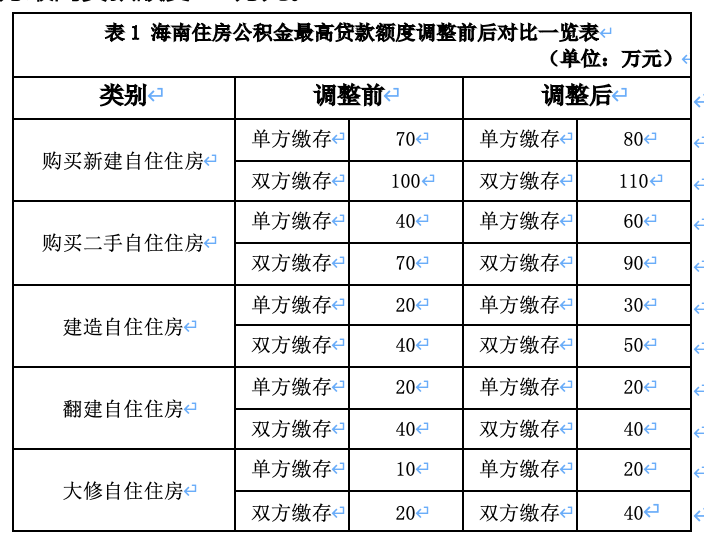 上浮了借款人家庭在海南省购买保障性住房的最高贷款额度。调整前:适用存贷挂钩政策保障性住房家庭最高额度上浮10%。调整后:购买保障性住房的,家庭最高贷款额度均可上浮10%。上浮后单方最高88万元,双方最高121万元。