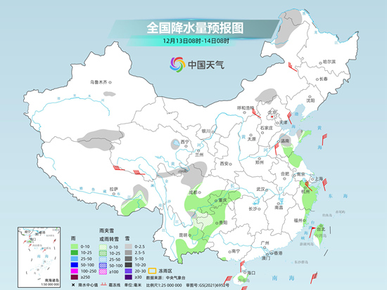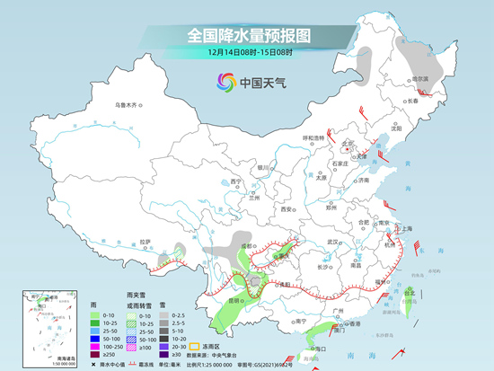 今明两天(12月13至14日),较强冷空气继续影响我国,多地将刷新立冬以来的气温新低。同时,今天我国北方降雪基本结束,明天起南方也将放晴,全国迎来大范围晴或多云天气。
