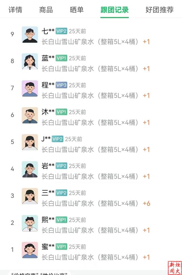 记者从“玲珑社区团”的“跟团记录”上看到,有许多消费者购买了该品牌的矿泉水。那么,“玲珑社区团”真的只是分享者吗?分享这样的商品给消费者能否心安?