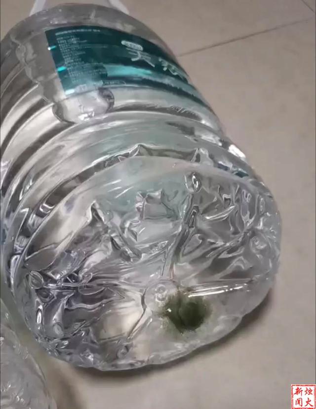 接下来的这段时间里,她和家人晚上喝茶时,就会使用新买的“长白山雪山矿泉水”,直到前几天喝到第三桶时,她无意间发现桶的底部有黑色的东西,起初她以为是桶底脏了,就拿抹布去擦,这时才发现黑色的物质是在桶内。