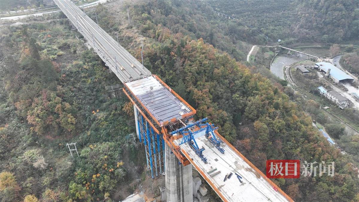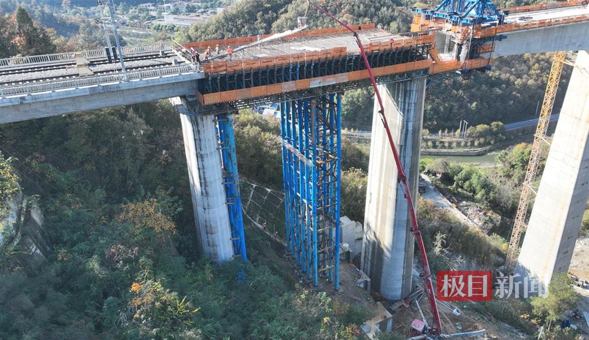 极目新闻记者梳理发现,近段时间西十高铁湖北段接连迎来多项重大进展。11月21日,五里河大桥无砟轨道先行段顺利施工,标志着西十高铁湖北段率先进入无砟轨道施工。12月6日,郧西站高11米、重约1.8吨的接触网支柱与基础拼接完成,西十高铁湖北段“强电”标接触网第一杆成功组立,标志着西十高铁湖北段“强电”工程全面启动,进入站前站后工程交叉施工阶段。