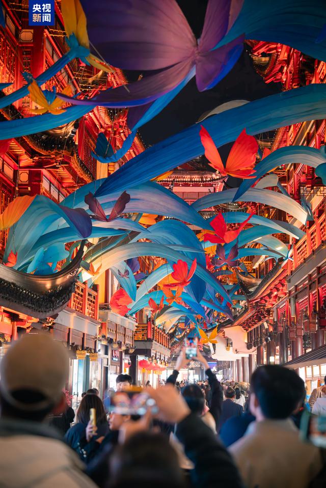 蛇年灯会将以“万物美好,众生奇妙”为主题,继续围绕《山海经》故事展开,以四大穿越之门,五大主题场景为主线,绚丽呈现生肖蛇与山海林木间百鸟百兽交错和谐的场景。黄金广场上的“生命之树”,描绘众多生物栖息于此的场景,展现人与自然,万物共生的亲密关系;凝晖路化身蝴蝶谷,营造出“逍遥物外,庄周梦蝶”的梦境,表达《庄子·齐物论》中所蕴含的万物美好、和合共生之感;中心广场呈现“天地人和,金蛇献瑞”的热闹丛林景象,灵蛇、蘑菇、小菌人,形成了一幅不同以往的自然愉悦之景;走进九曲桥,仿佛走进“众生奇妙,丛林乐园”,九曲桥上,潺潺的流水声和生灵的鸣叫、丛林氛围弥漫青草香和花香,展现一幅绚丽而生机勃勃的画卷。为了给游客营造充满科技感的多元文化体验,豫园灯会也将推出神奇点灯仪式、黑科技丛林之眼、元宇宙灯会、AR神兽互动、AI旅拍、VR沉浸式体验等系列项目。