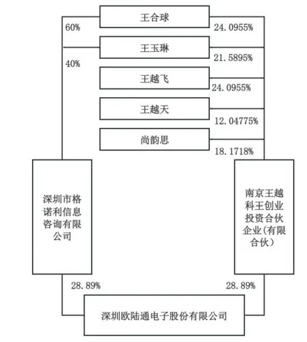 欧陆通可以称得上是典型的家族企业。王合球和王玉琳系夫妻关系,王越天、王越飞分别为二人长子、次子;尚韵思系王越天的配偶。