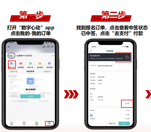通过数字心动APP报名,且在二次抽签中签的选手,可通过以下步骤进行缴费。二次中签选手应在12月28日24点前按照页面提示完成报名费缴纳。