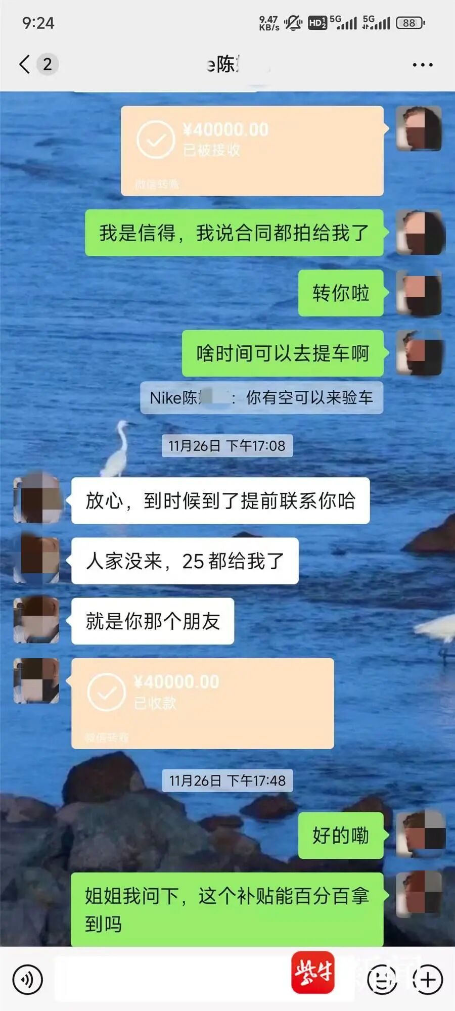 张先生说,此后几天,他一直通过微信与陈某某沟通汽车装潢事项,一切正常。然而,12月21日晚上,店里经理主动给他打电话,询问他将购车款转给陈某某的情况。几句交谈后,经理告诉他,陈某某可能把钱挪用了,正在让她凑钱,随后就挂了电话。张先生再打电话过去,已无法接通。