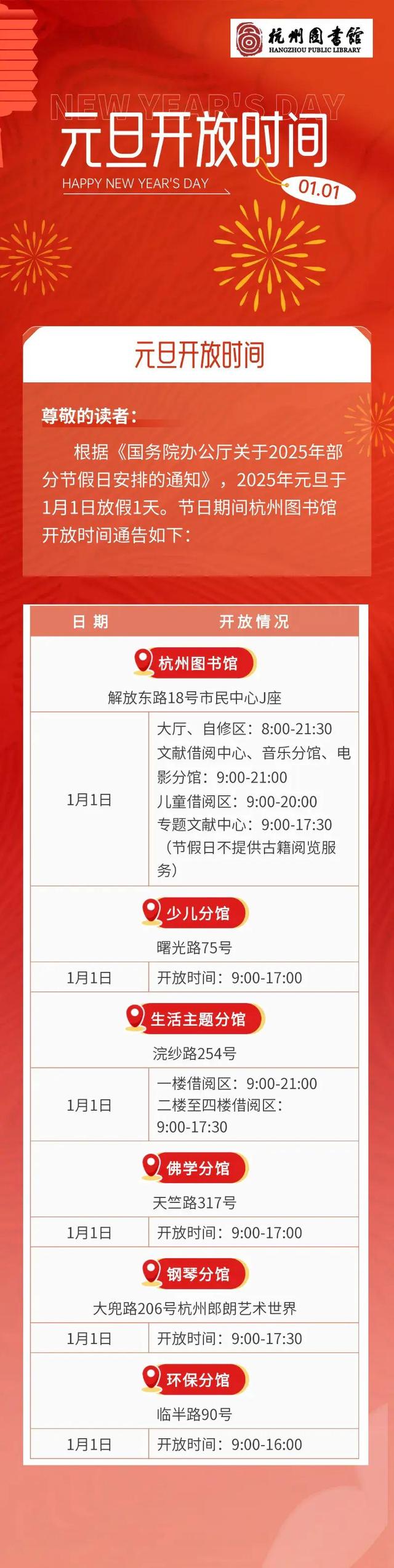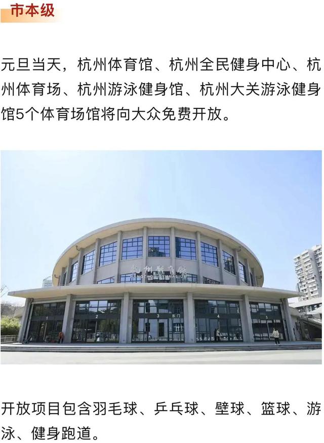 明天即将迎来2025年元旦,为满足市民朋友的文体娱乐需求,杭州多个场馆官宣:元旦当天,免费开放!