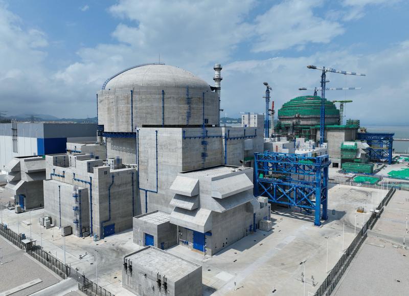 2024年9月27日拍摄的漳州核电1号机组(画面左侧)(无人机照片)。