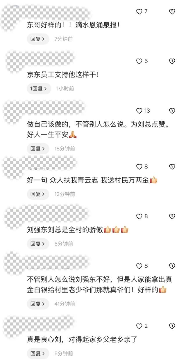 刘强东给乡亲发钱的一幕对此网友纷纷点赞: