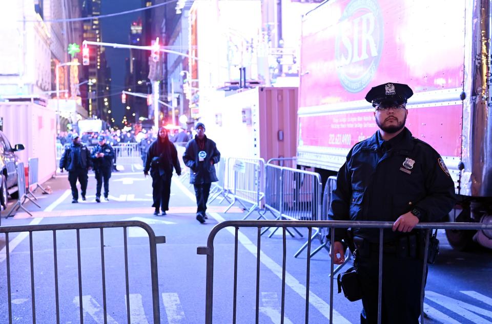 2024年12月31日,警察在美国纽约时报广场执勤。新华社记者李睿摄