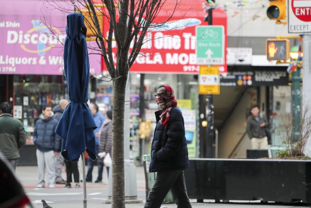 2020年3月16日,行人走在美国纽约皇后区街头。新华社记者王迎摄