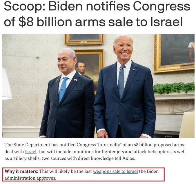 帮助以色列用美国的钱买美国的武器,拜登政府的服务简直贴心到家了。