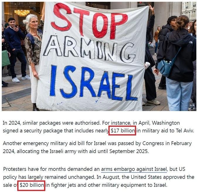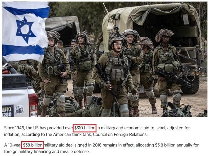 往远了说,据美国外交关系协会统计,自1946年至今,美国已向以色列提供了超过3100亿美元的各类援助,其中主要是军援。