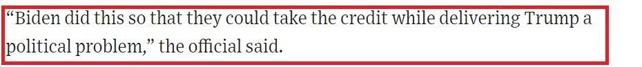 《华尔街日报》则援引美国国会官员的话进一步点明要害:拜登这样做是为了给自己带来荣誉,同时给继任者特朗普留下“政治问题”。