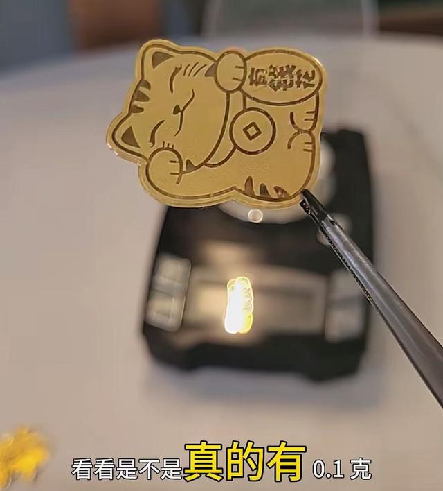 在社交平台上,甚至有商家为了自证自家贴纸的确含有0.1克黄金,用火燃烧贴纸,烧掉表面粘贴胶后,将金片剥离出来称重。