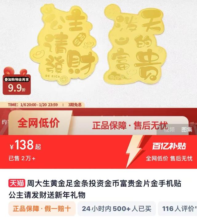 据荔枝新闻,淘宝数据显示,过去一年至少有20万年轻人购买了黄金贴纸,黄金贴纸有望成为今年流行的新年“硬核通货”吗?