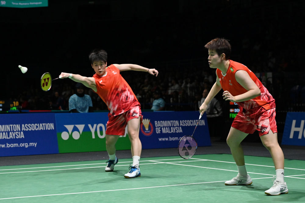 此外,当日下午,分别进行女双、男单比赛的第2号球场与第3号球场上方屋顶突发雨水渗漏,导致比赛被迫中断。比赛恢复后,另一对国羽女双组合贾一凡/张殊贤保持平和心态,稳定发挥,以21:17、21:10淘汰马来西亚组合吴佩琪/张湄鑫,顺利晋级下一轮。