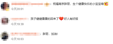 见此,网友们也纷纷在评论群留言“祝福南京胖哥,生个健康快乐的小宝宝唷”“祝福,好人有好报”