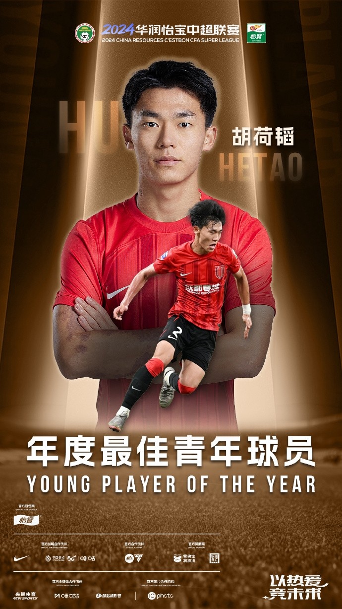 成都蓉城球员胡荷韬收获最佳青年球员奖。