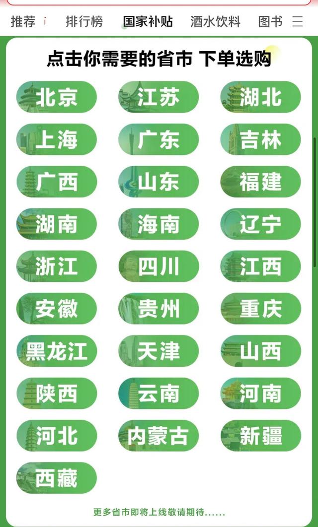 红星新闻记者注意到,目前购物平台都已开通了“国家补贴”的专门频道,用户点击进入后可以根据自己所在地区等,通过指引享受使用“国补”购物。