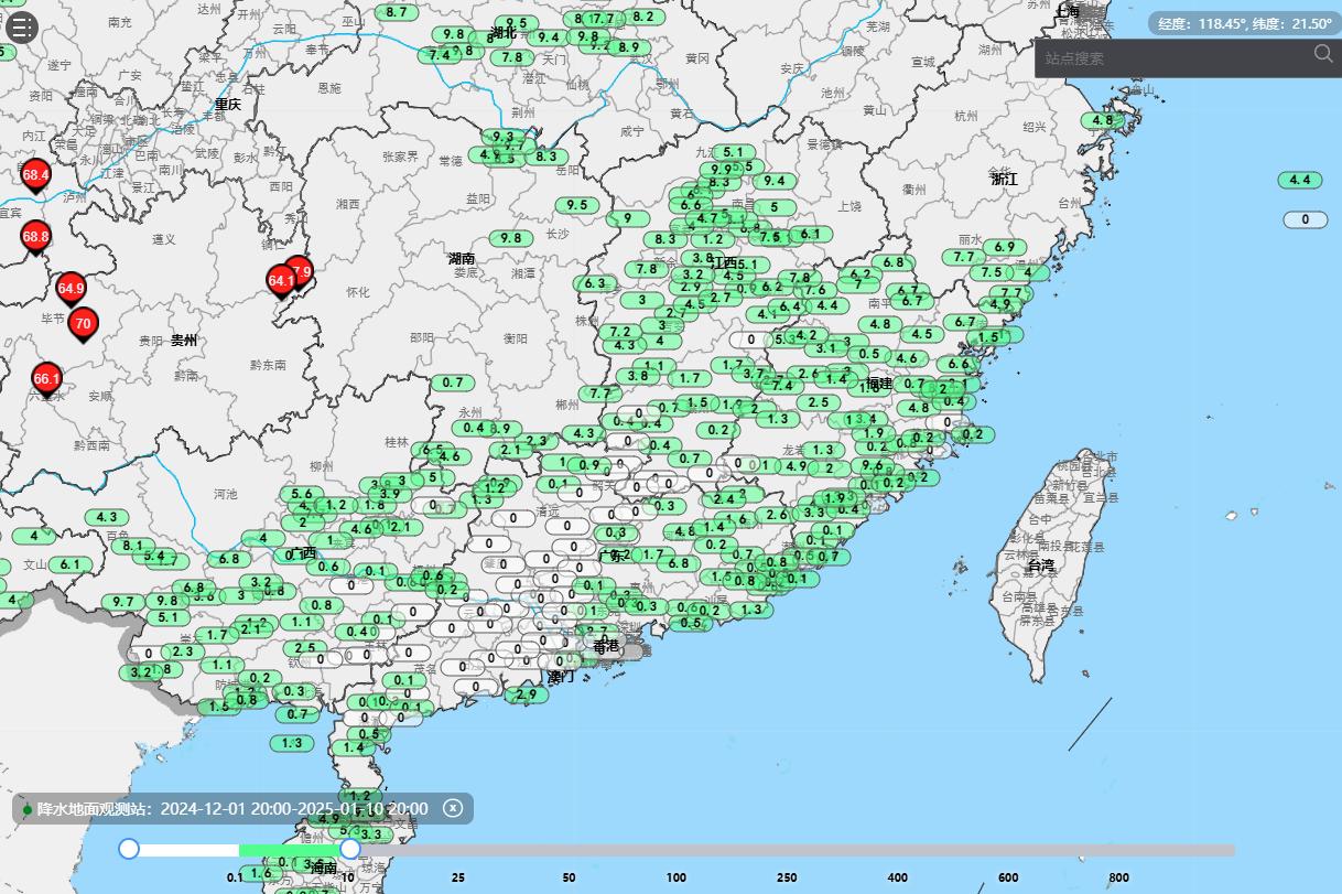 尤其江西南部、广东中西部、广西东部一些站点12月以来的降水量甚至为0,其中广东近半站点12月以来都是滴雨未落!像广州,上一次降水还是在2024年的11月26日。