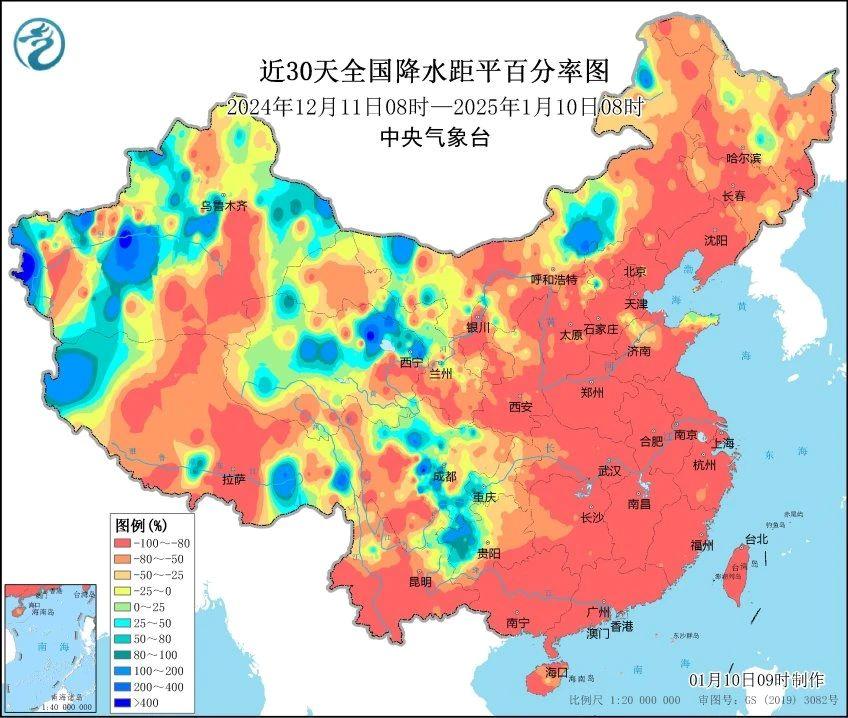 这些地方错过的不止这一场雨雪。近一个月以来,从华北到华南的中东部大部地区降水都较常年同期偏少8成以上。