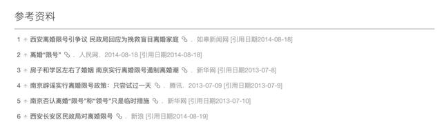 网传内容称目前已有青岛、广州、大连、南京等地实施了离婚限号。在上述平台词条的实施城市中,顶端新闻记者发现确实包含以上城市,但引用消息来源多截取自2013至2014年的新闻报道。