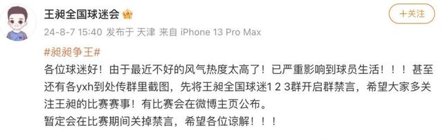 同月7日,账号“王昶全国球迷会”发文,几个球迷群开启禁言。