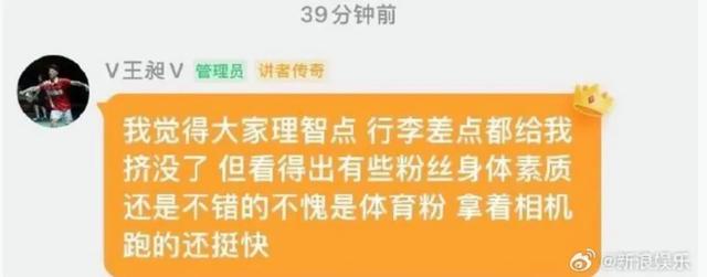时间回到2024年8月,王昶曾在粉丝群发声:“我觉得大家理智点,行李差点都给我挤没了。”