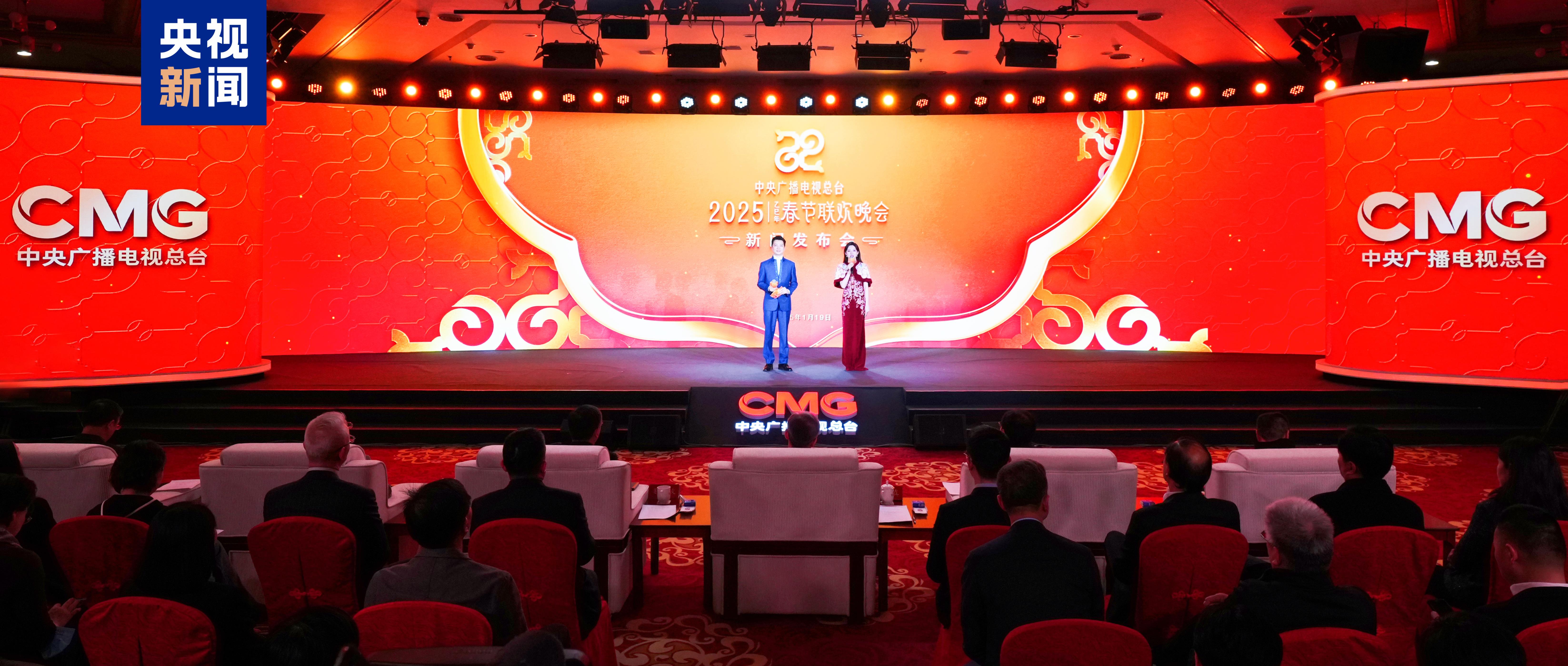 1月19日,中央广播电视总台《2025年春节联欢晚会》举行新闻发布会,介绍节目和技术创新亮点,官宣主持人阵容和舞美设计。中央广播电视总台副台长王晓真,总台编务会议成员姜文波、周振红,中宣部文艺局副局长彭云等出席活动。