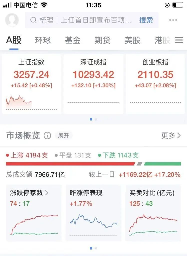 1月20日早盘,A股走强,三大指数集体高开,截至午间休盘,沪指涨0.48%,深成指涨1.3%,创业板指涨2.08%。市场上4184只个股上涨,成交7966.71亿元。