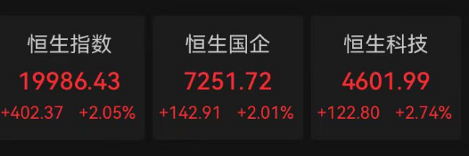 港股走强,截至发稿,香港恒生指数涨逾2%,恒生科技指数涨2.74%。