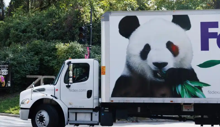 △2024年10月15日,运送大熊猫的卡车即将驶入美国华盛顿国家动物园