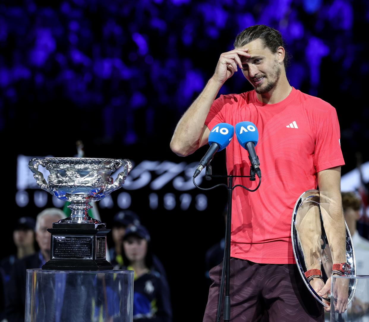 兹维列夫赛后首先登上领奖台,他站在冠军奖杯前说:“老实说,站在这个奖杯旁边却不能触摸它,感觉真的很糟糕。但祝贺扬尼克(辛纳),你完全配得上这个荣誉。你无疑是当今世界上最优秀的球员,我本希望今天能打得更有竞争力,但你实在是太出色了,我还不够好,事情就这么简单。”