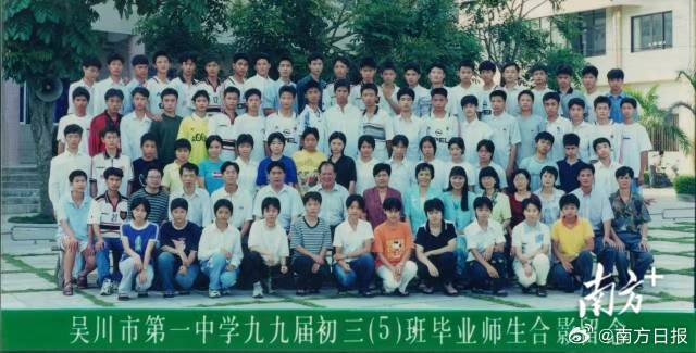 在吴川一中九九届初三(五)班毕业师生合照中,梁文锋的身影赫然在列。今天,南方都市报记者从梁文锋的初中班主任获悉,梁文锋是湛江市吴川市覃巴镇米历岭村人,他小学就读于吴川梅菉小学,父母都是小学语文老师。