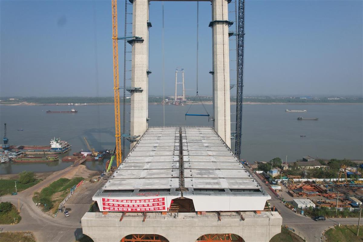 极目新闻记者获悉,由其承担的武汉双柳长江大桥南岸跨粑铺大堤钢-混组合梁LUHPC(轻质超高性能混凝土)桥面板安装工程圆满完成,实现了LUHPC混凝土在国内桥梁工程的首次大规模应用,体现了中铁大桥局过硬的技术水平,为类似重大工程实践提供了宝贵经验,也为今后新材料在相关工程中的大力推广奠定了坚实基础。