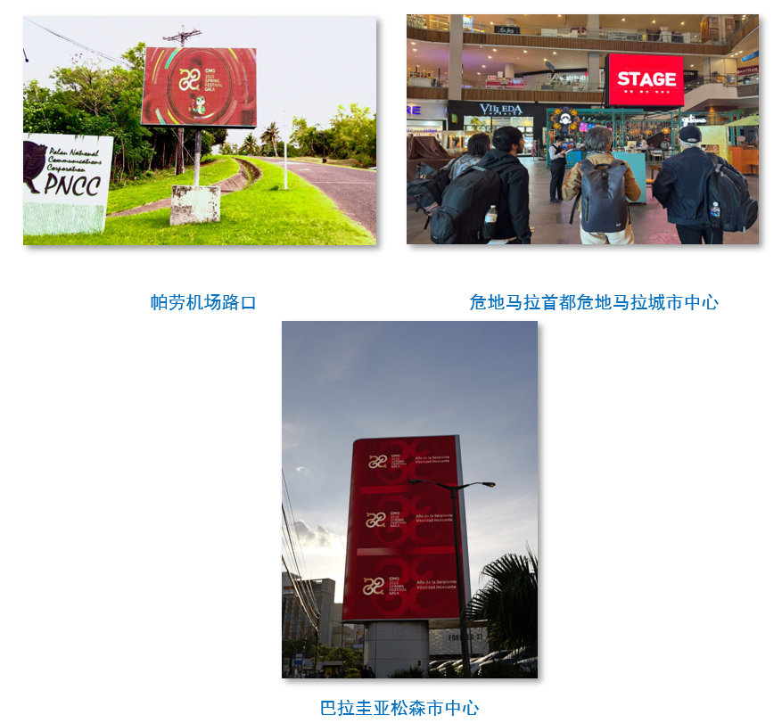 春晚宣传片首次亮相芬兰、冰岛、哥伦比亚、智利、博茨瓦纳、莫桑比克、伊朗、伊拉克、蒙古国、尼泊尔等28个国家;首次在台湾当局所谓“邦交国”危地马拉、巴拉圭、帕劳户外大屏或主要商圈亮相,并首次登陆秘鲁钱凯港、白俄罗斯中白工业园、特立尼达和多巴哥凤凰工业园等共建“一带一路”标志性项目的公共大屏,与世界同享中国新春的喜庆氛围。