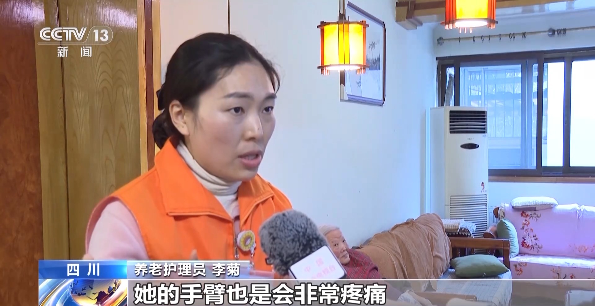 养老护理员 李菊:刚开始来的时候,她的双下肢水肿特别厉害,她每天都会用拐杖,她的手臂也会非常疼,通过我每一次来给她进行各个关节的护理,现在她用拐杖完全是没有问题了,双下肢水肿有明显的好转。