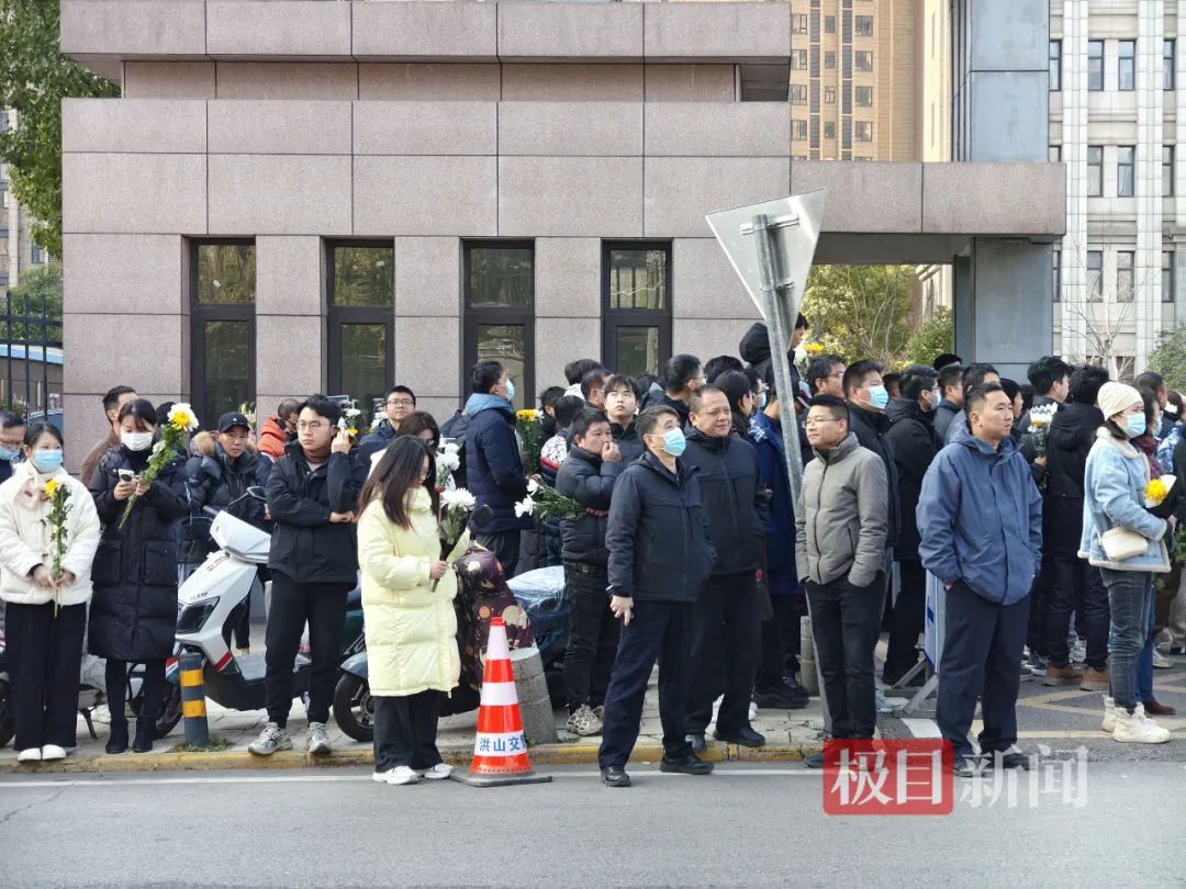 来自河南驻马店的刘女士拖着行李箱来到武昌殡仪馆。她是一位培训机构的教师,原本准备去上海,得知黄旭华院士去世的消息,特意在武汉转车,停留了一天。“今天特意在殡仪馆旁边的花店买了鲜花。自己是通过新闻报道才了解到黄院士的英雄事迹,我被他‘赫赫而无名’的精神感动,‘谁说站在光里的才是英雄。’”